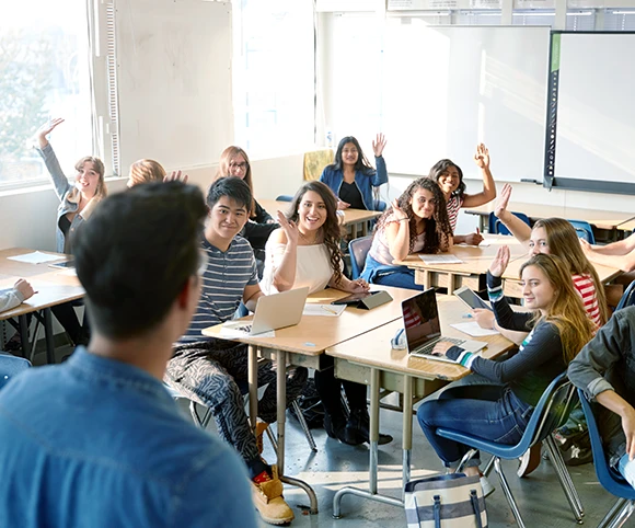 通学受講とオンライン受講が融合した高品質なハイブリッド授業を先駆けて導入。受講生は登校してクラスメイトと一緒に学ぶ形式、オンラインで受講する形式を自由に選ぶことができます。